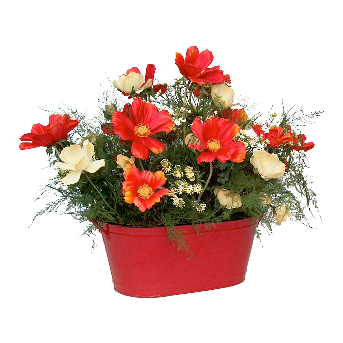 Red Cosmos in Oval Planter